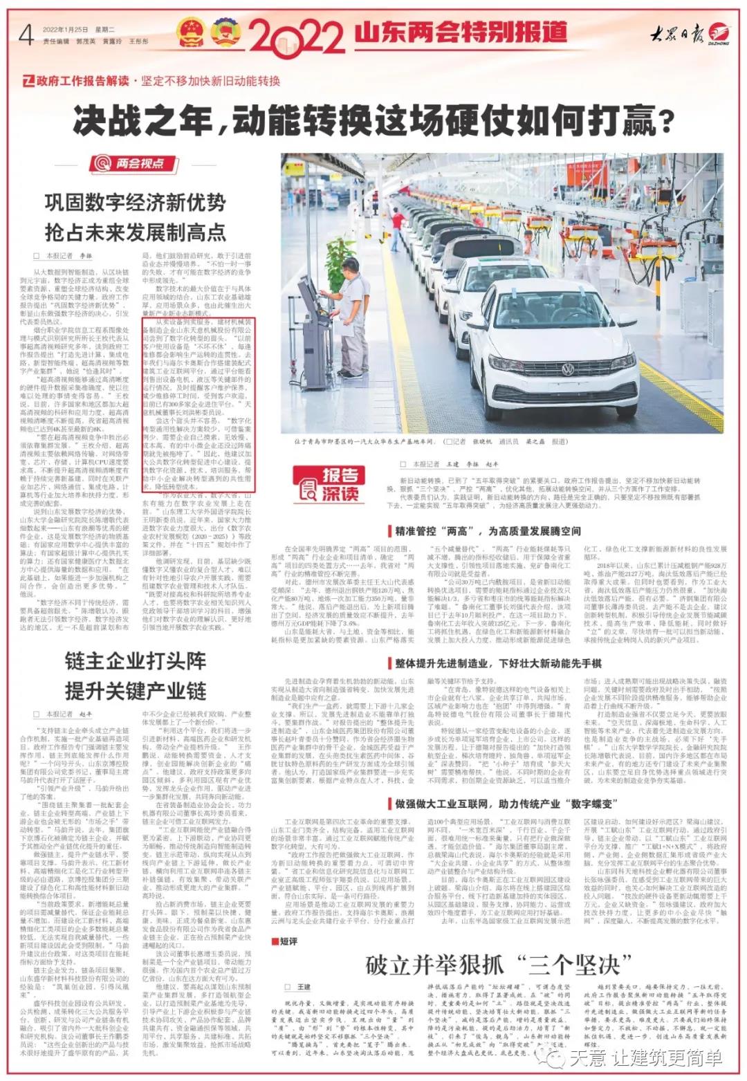 會議期間,劉洪彬提交了《關于加快山東省中小企業(yè)數字化轉型的建議》的提案,并就數字化轉型的相關內容接受了大眾日報記者的采訪。劉洪彬告訴記者,“以前客戶使用設備是‘不壞不休’,每逢維修都會影響生產運轉的連貫性。去年我們搭建了裝配式建筑工業(yè)互聯網平臺,通過平臺能看到售出設備電機、液壓等關鍵部件的運行情況,及時提醒客戶維護保養(yǎng),減少維修停工時間,受到客戶歡迎,目前已有300多家企業(yè)進駐平臺。“數字化轉型通用性解決方案較少,可借鑒案例少,需要企業(yè)自己摸索,見效慢、成本高,有的中小微企業(yè)還沒過陣痛期就先被拖垮了。”因此,他建議“加大公共數字化轉型促進中心建設,提供數字化資源、技術、培訓服務,幫助中小企業(yè)解決轉型遇到的共性需求,降低轉型成本。”