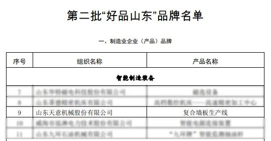 喜報!天意機械入選好品山東