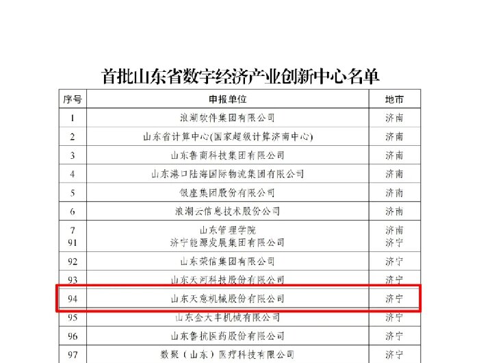 近日,省工信廳公布了首批山東省數(shù)字經(jīng)濟創(chuàng)新平臺名單,天意機械入選首批數(shù)字經(jīng)濟產(chǎn)業(yè)創(chuàng)新中心公示名單。