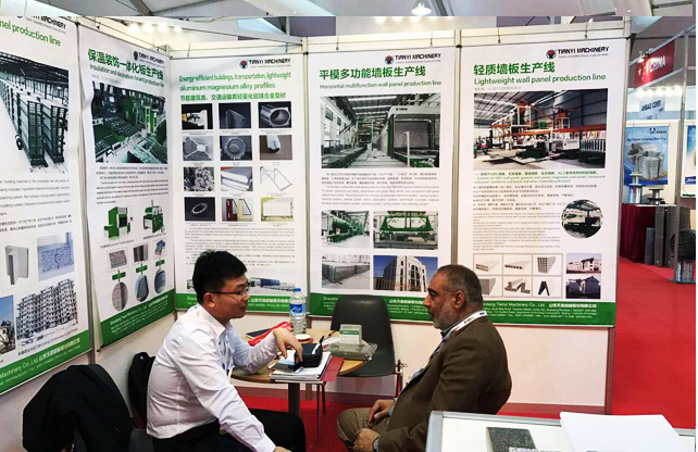 作為中國裝配式裝配品牌代表之一,天意亮相2017年沙特吉達五大行業(yè)展覽會。主要參展產品有預制混凝土PC生產線、保溫裝飾一體化板生產線、輕質墻板生產線等產品。亮相首日,即吸引了大批客商前來觀摩了解,天意國際貿易部銷售經理詳細為來訪客戶人介紹天意裝備在建筑領域應用優(yōu)勢以及成本分析。