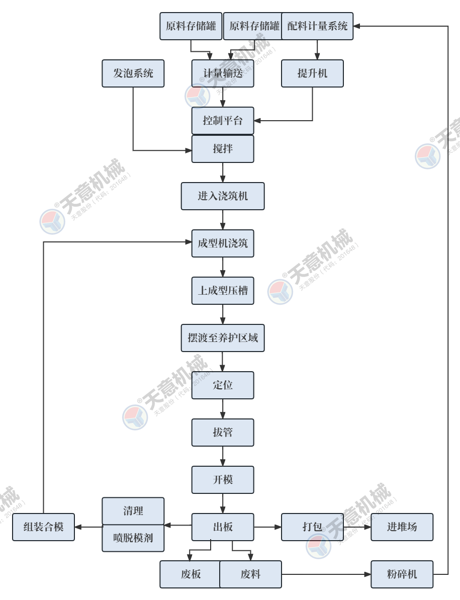 6.成組立模法生產(chǎn),攪拌灌漿成型,采用機組流水工藝,自動化程度高。
